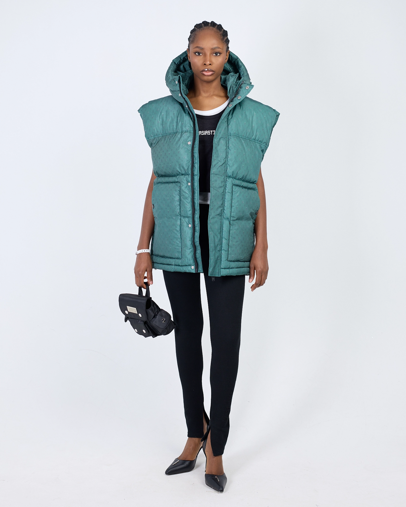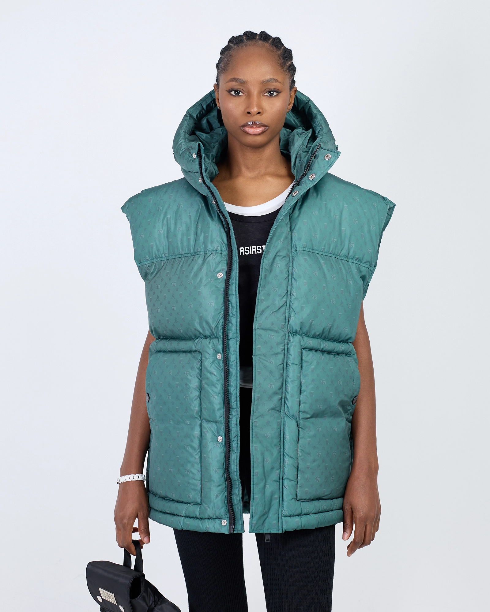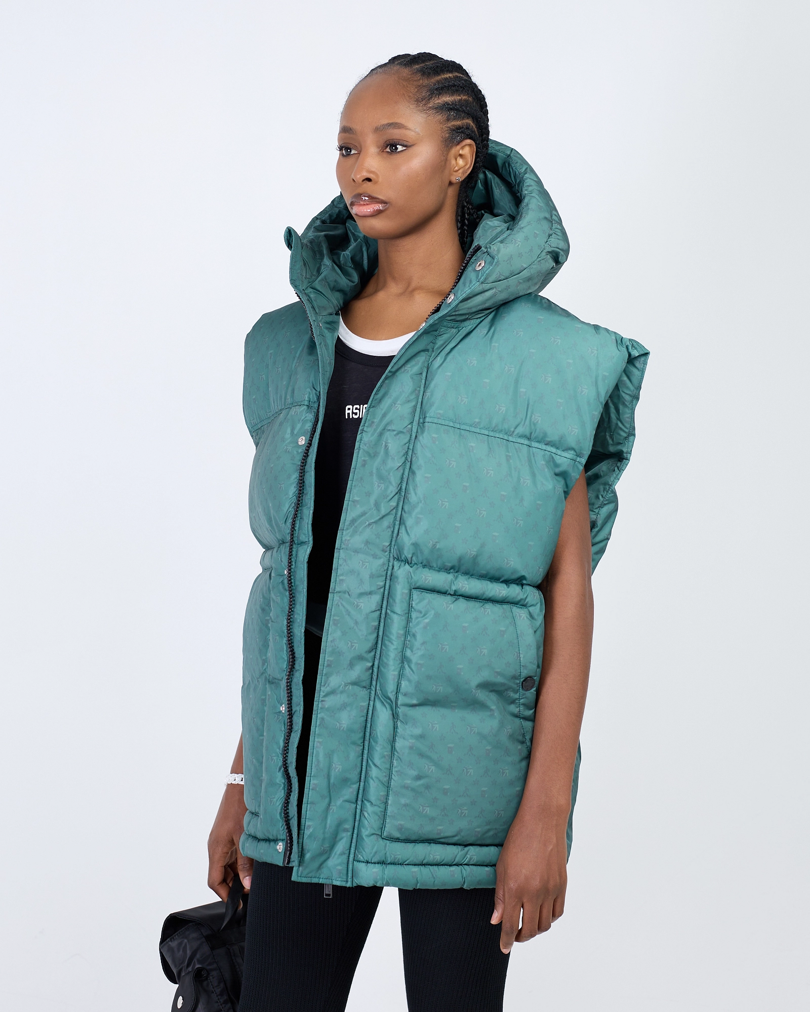 ДУТЫЙ ЖИЛЕТ С ФИРМЕННОЙ МОНОГРАММОЙ. ВНУТРИ ГИПОАЛЛЕРГЕННЫЙ УТЕПЛИТЕЛЬ ХОЛЛОФАЙБЕР, ЖИЛЕТ ДОПОЛНИТЕЛЬНО ПРОСТЕГАН. ШИРОКАЯ ЛИНИЯ ПЛЕЧА СОЗДАЕТ ПРАВИЛЬНЫЙ OVERSIZE СИЛУЭТ, А БЛАГОДАРЯ ШИРОКИМ ПРОЙМАМ ЕГО МОЖНО НАДЕТЬ НА ОБЪЕМНЫЙ ДЖЕМПЕР ИЛИ ХУДИ. ГЛУБОКИЙ НЕСЪЕМНЫЙ КАПЮШОН И НАКЛАДНЫЕ КАРМАНЫ СПЕРЕДИ. ПОМИМО БРЕНДИРОВАННОЙ МОЛНИИ ДОБАВЛЕНА ПЛАНКА, ЗАЩИЩАЮЩАЯ ОТ ВЕТРА. ПО НИЖНЕМУ КРАЮ КУЛИСКА С ФИКСАТОРАМИ ДЛЯ ВОЗМОЖНОСТИ УТЯЖКИ."