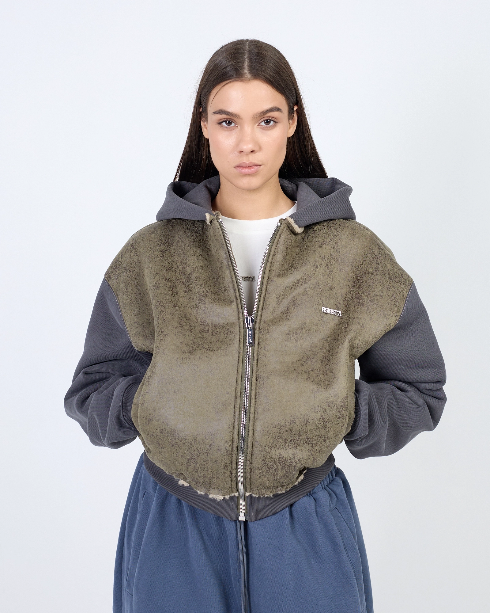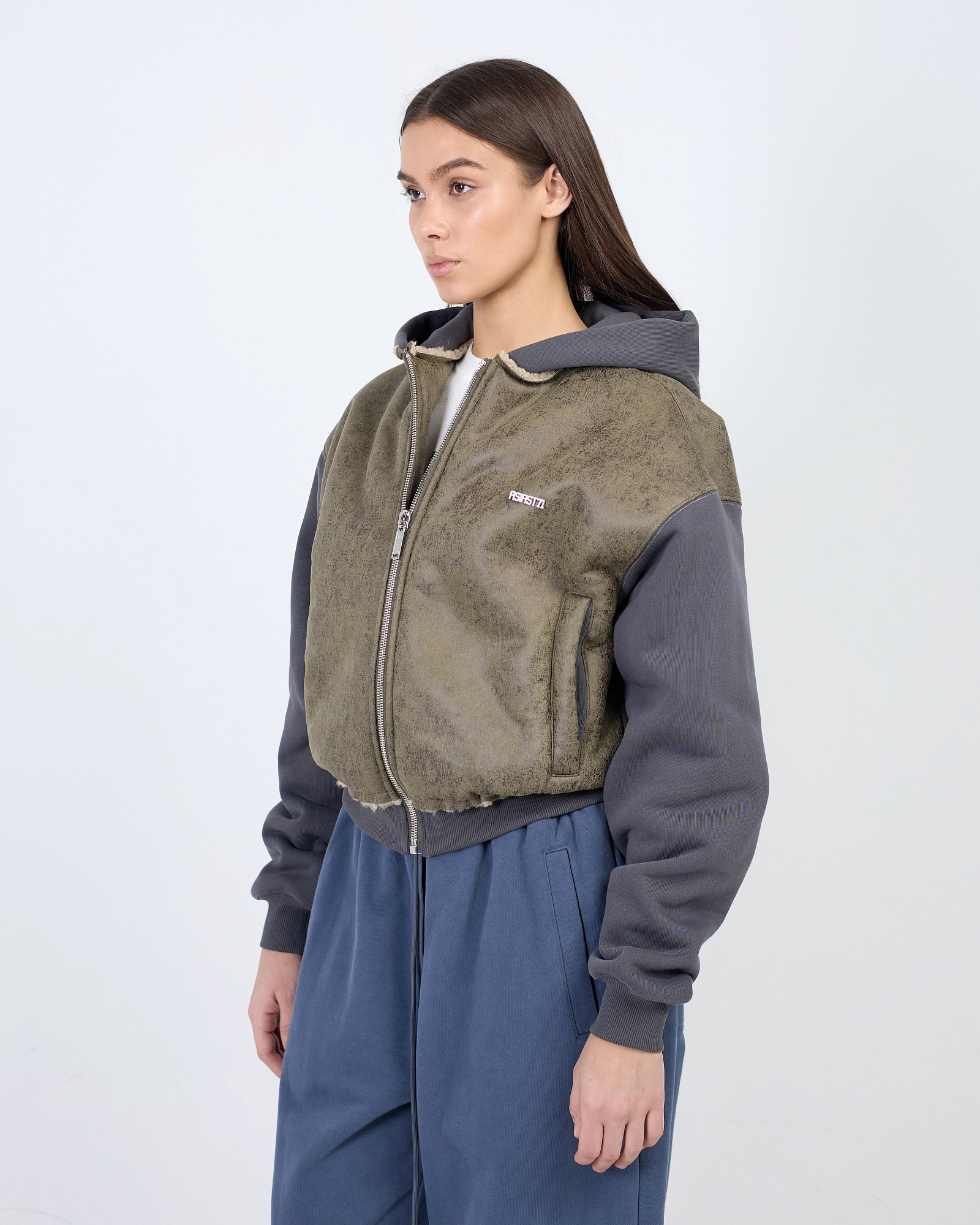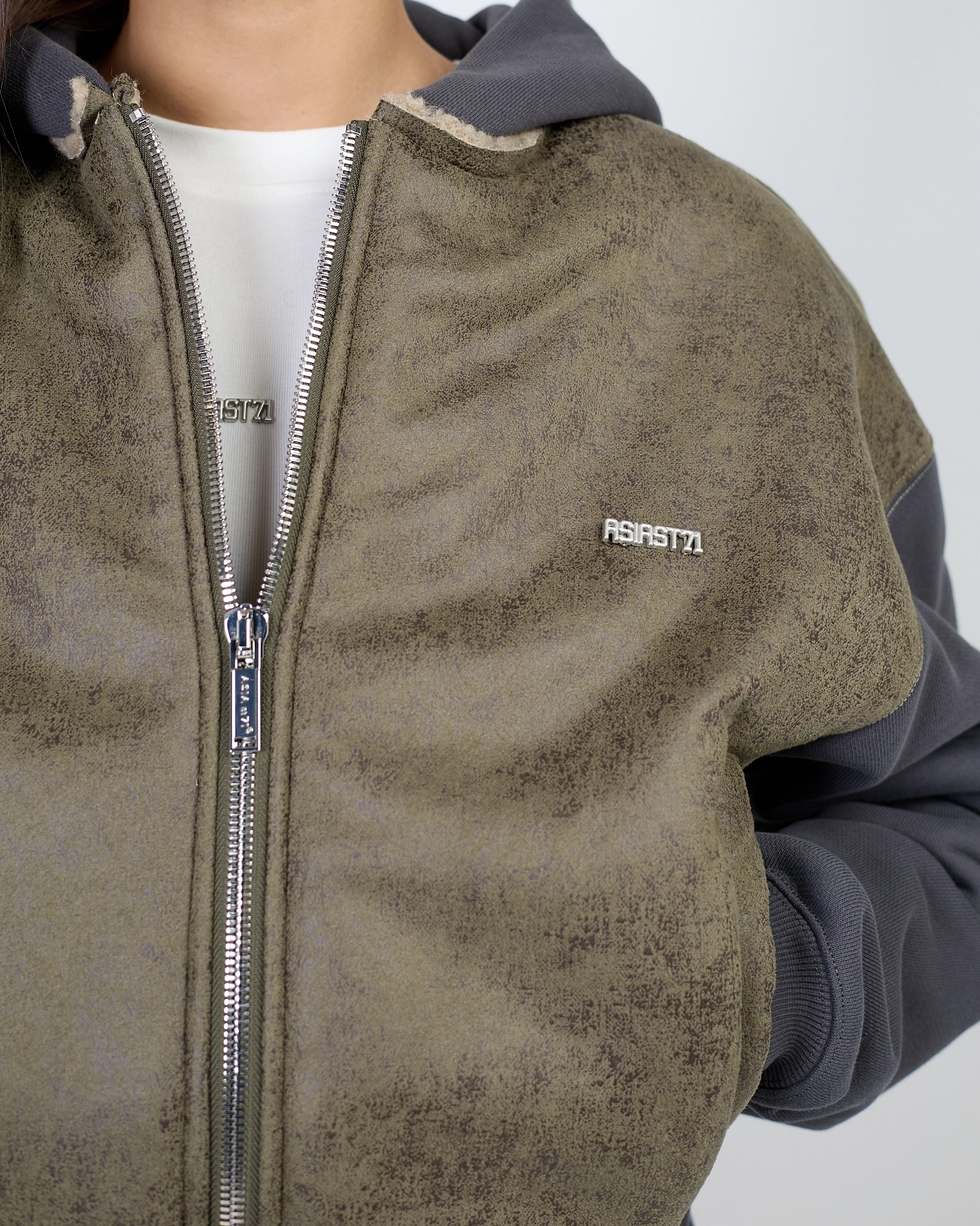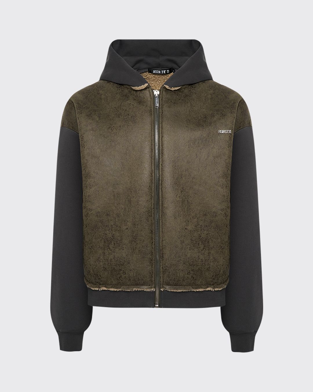 ХУДИ NTI LEATHER ZIP BLACK ВЫПОЛНЕНО ИЗ МЯГКОЙ ФАКТУРНОЙ ЭКО-КОЖИ. СВОБОДНЫЙ СИЛУЭТ С ОБЪЁМНЫМ КАПЮШОНОМ И ЭЛАСТИЧНЫМИ МАНЖЕТАМИ. НА ГРУДИ — ФИРМЕННАЯ СИМВОЛИКА ASIA ST 71, НА РУКАВЕ — ГРАФИЧНЫЙ ЭЛЕМЕНТ В ВИДЕ СТРЕЛКИ. ЦЕНТРАЛЬНАЯ МОЛНИЯ И СОБРАННЫЙ НИЗ ФОРМИРУЮТ ЧЁТКУЮ ЛИНИЮ. СОЧЕТАЙТЕ СО СВОБОДНЫМИ ДЖОГГЕРАМИ И ЛАКОНИЧНЫМИ ФУТБОЛКАМИ."