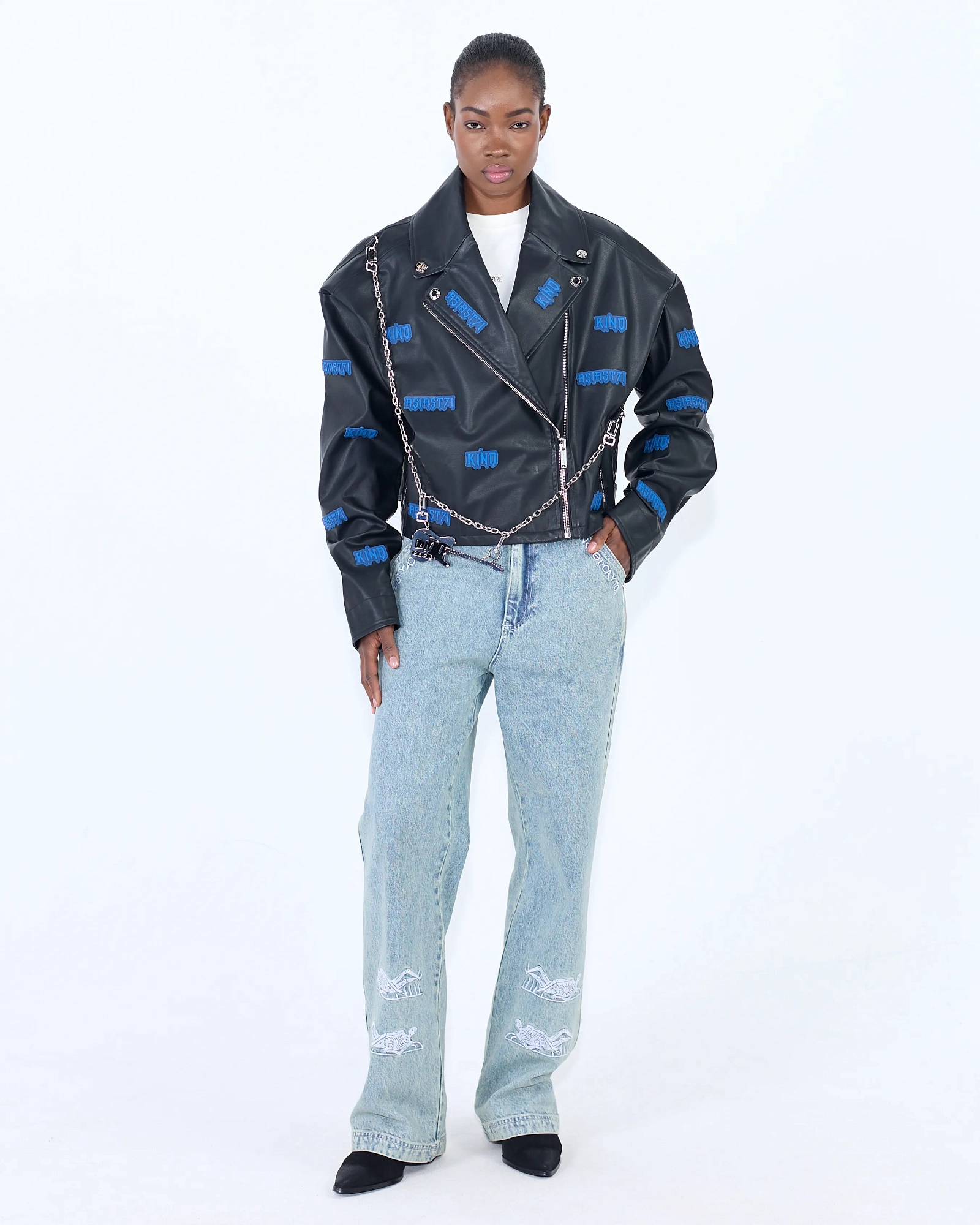 string(577) "Джоггеры из плотного хлопка с контрастными прошитыми патчами. Широкая резинка и универсальная посадка. Имеют свободный крой, обеспечивающий свободу движений. Стальная фурнитура, кулиска с фиксатором на щиколотках с возможностью утяжки. Рекомендуем носить с футболкой или худи под куртку-косуху из коллекции «Kino»."