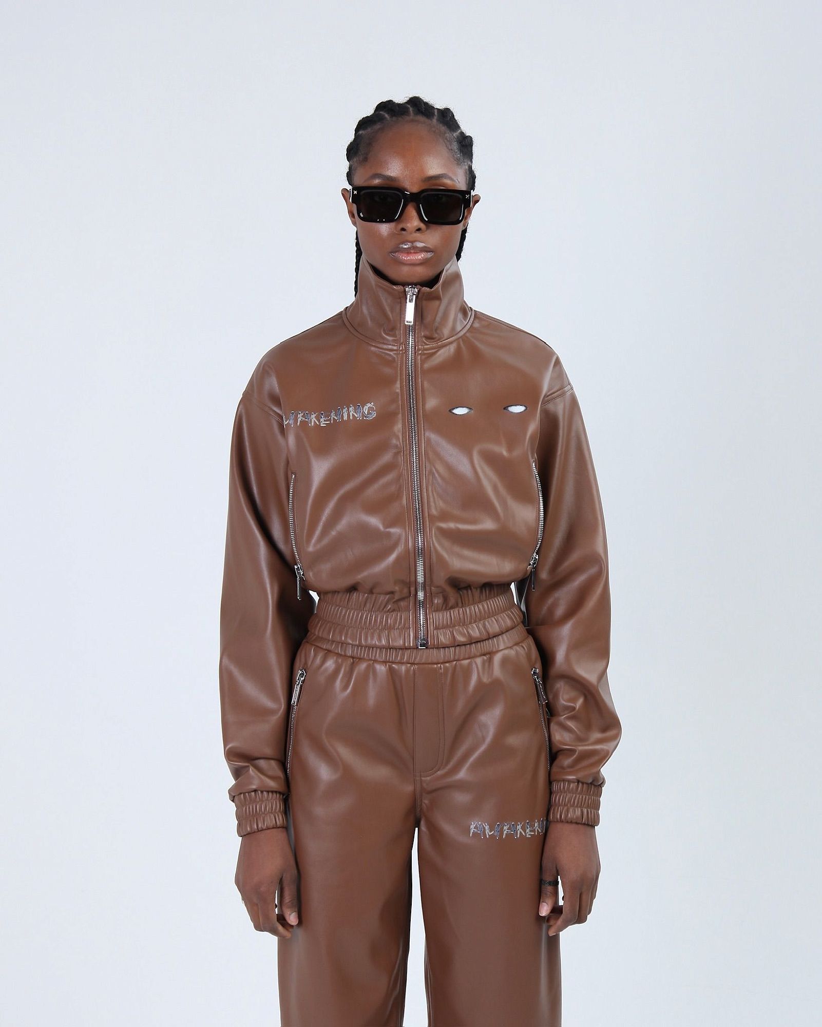 ДЖОГГЕРЫ ИЗ МЯГКОЙ ЭКО КОЖИ СВОБОДНОГО КРОЯ. НА ПОЯСЕ КОМФОРТНАЯ РЕЗИНКА, НА ЩИКОЛОТКАХ И КАРМАНАХ БРЕНДИРОВАННАЯ СТАЛЬНАЯ ФУРНИТУРА. ПРИНТ НАНЕСЕН ЛАЗЕРНОЙ ПЕЧАТЬЮ. МЫ РЕКОМЕНДУЕМ СОЧЕТАТЬ ДЖОГГЕРЫ С ОЛИМПИЙКОЙ ИЗ ЭТОЙ ЖЕ КОЛЛЕКЦИИ ИЛИ БАЗОВЫМИ ФУТБОЛКАМИ, ДЖЕМПЕРАМИ ИЛИ ХУДИ. "