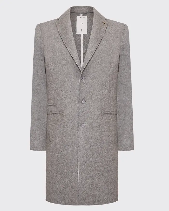 Однобортное пальто из смесовой шерсти в облегченном варианте без подкладки. Прямой крой и необработанные края, классические лацканы и шлица сзади. Брендированные пуговицы в тон и стальная фирменная стрелка на лацкане. Мы рекомендуем носить пальто с повседневными и классическими образами.