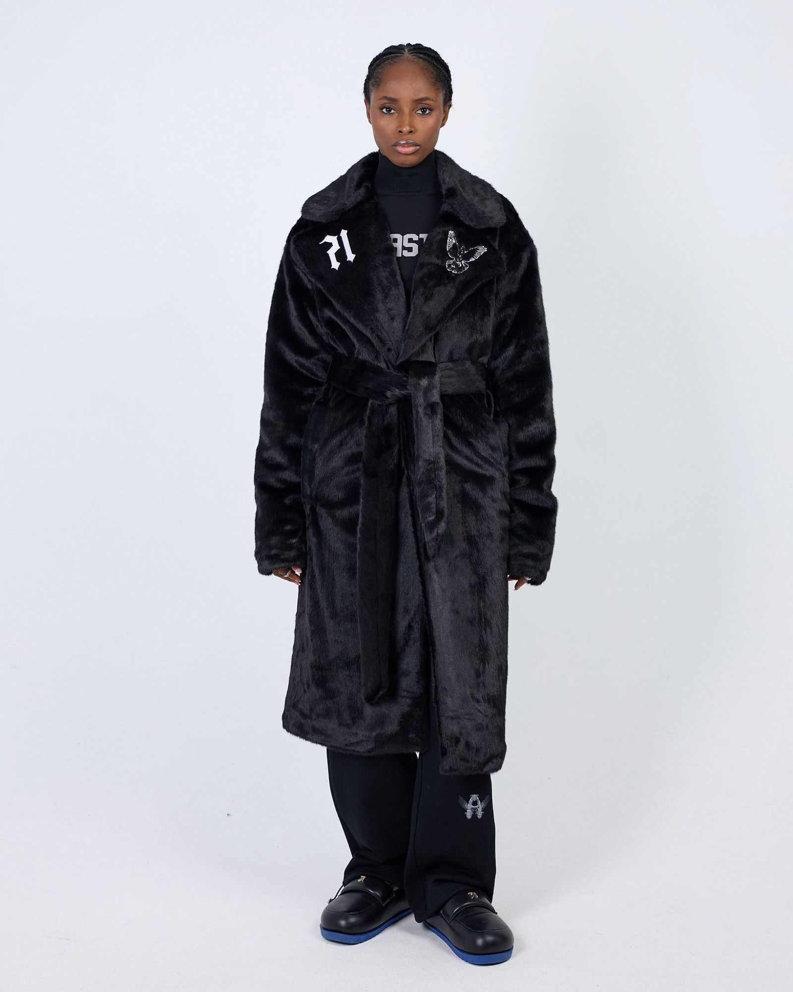 Шуба из экологичного и мягкого меха в длине макси. с поясом в комплекте. Акцентная вышивка на вороте и спине контрастными нитями. Акцентный айтем подойдет для холодной погоды. Рекомендуем носить в вечерних и элегантных образах или в контрастном варианте с небрежным спортивным/кэжуал стилем.