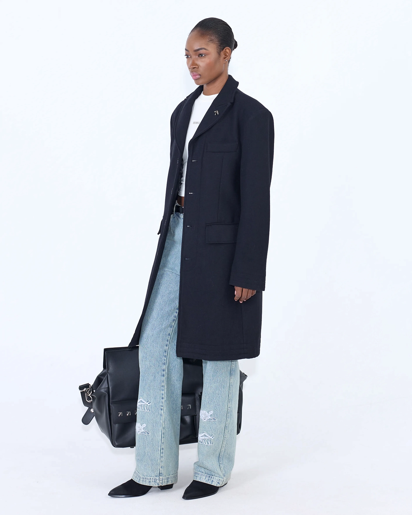 Детали — лаконичные пуговицы, карманы с необработанным краем, швы подчёркнуты контрастной строчкой. Носите с денимом и кроссовками — для городского фита, или с костюмом — для более собранного образа.