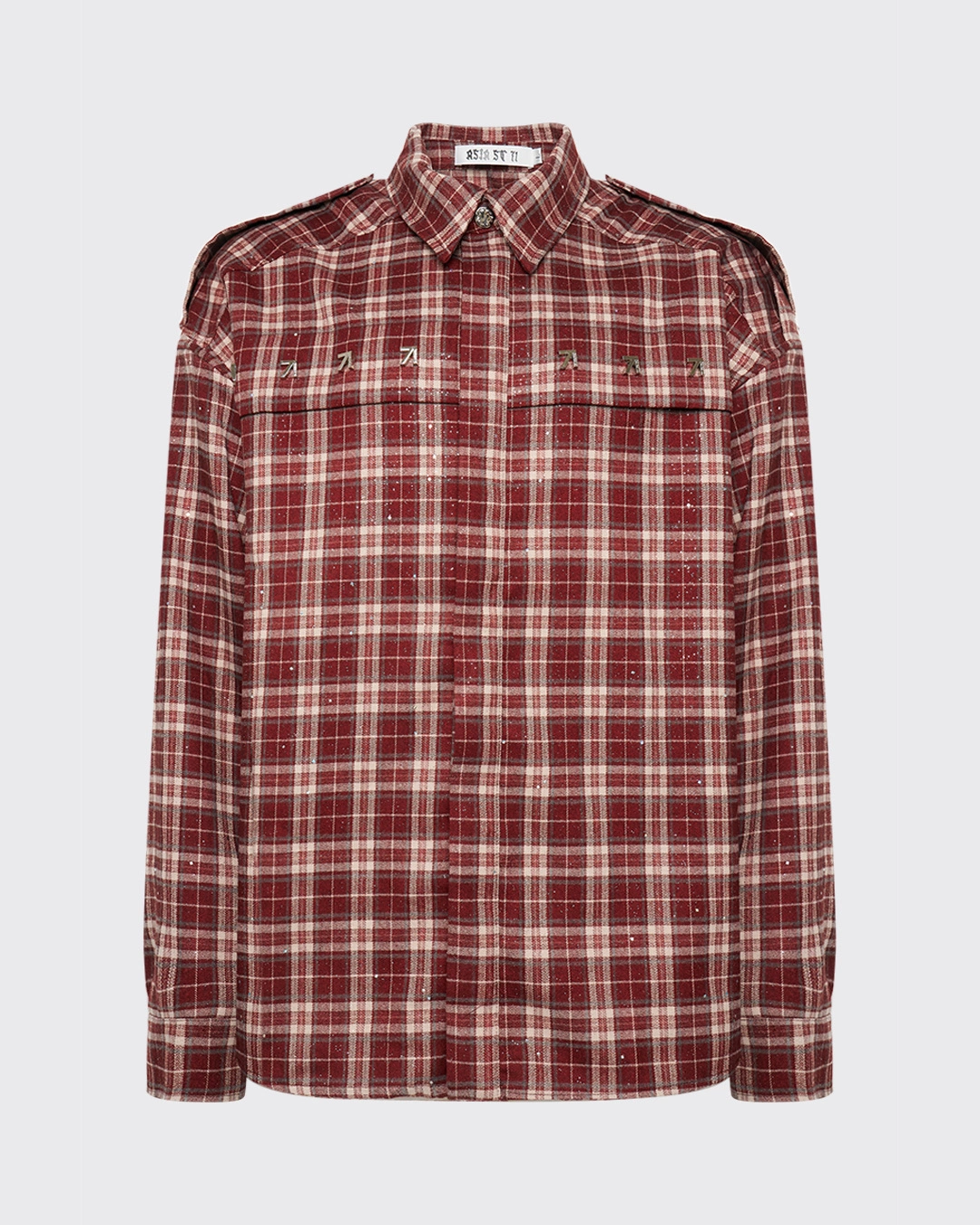 string(435) "Яркая рубашка свободного кроя из плотного хлопка в классическую синюю клетку с эффектом потертостей и металлическим декором, добавляющим образу ноту гранжа. Носите как самостоятельный элемент или надевайте поверх футболки.