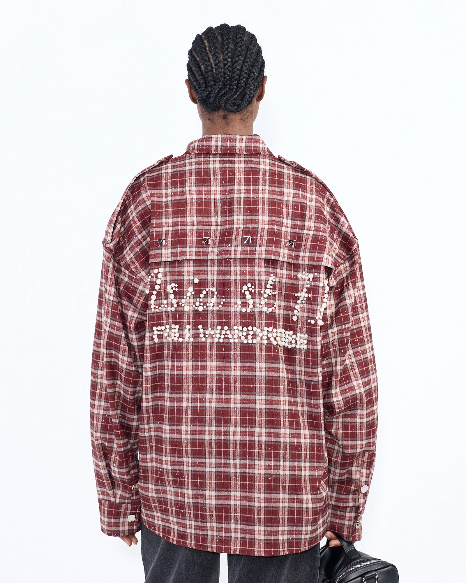 string(420) "Яркая рубашка свободного кроя из плотного хлопка в классическую синюю клетку с эффектом потертостей и металлическим декором, добавляющим образу ноту гранжа. Носите как самостоятельный элемент или надевайте поверх футболки.
