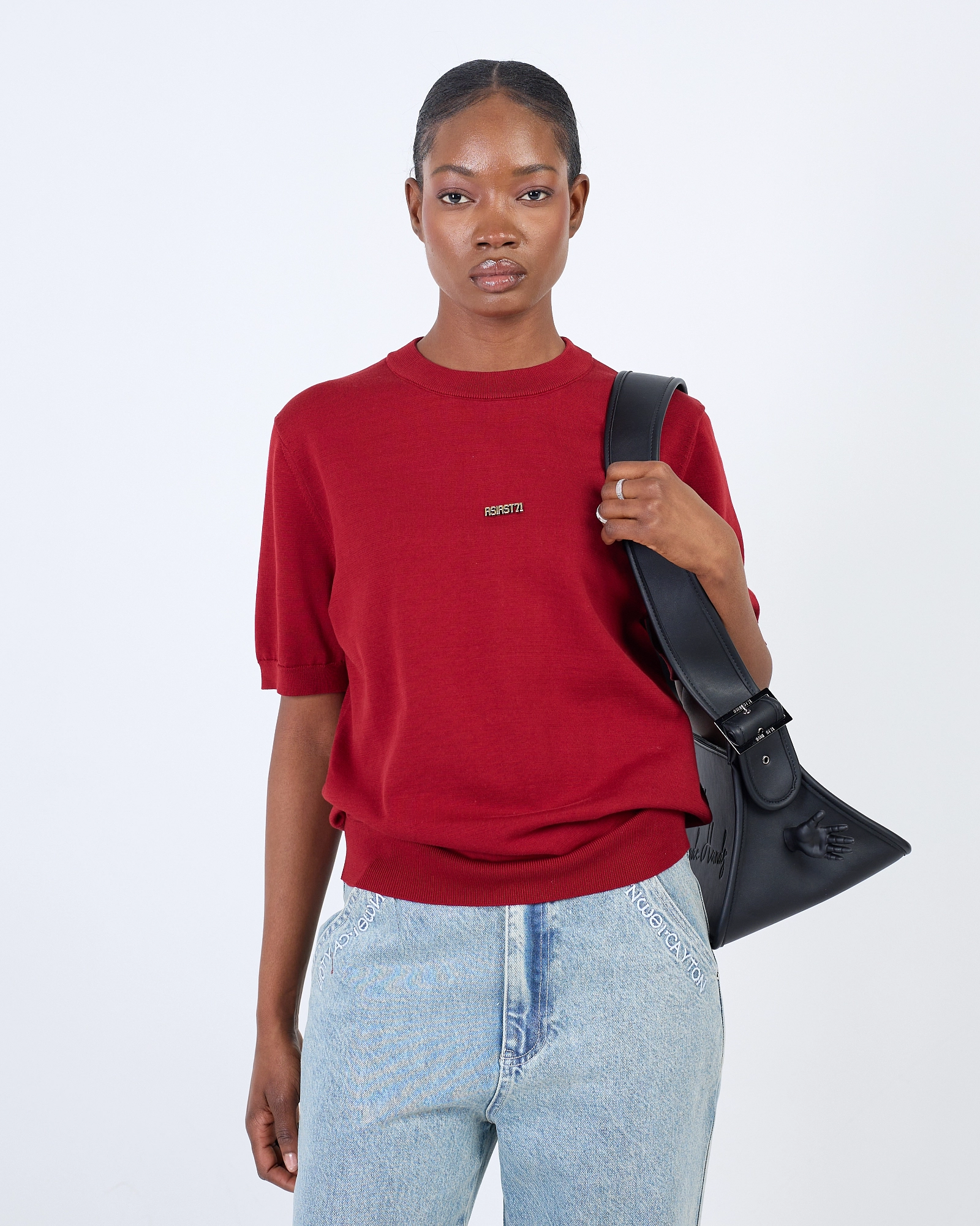 Декорирована стразами, подобранными в тон основного цвета ткани — они изящно мерцают на свету, не выбиваясь из общей палитры, а лишь подчёркивая оригинальность изделия. Это делает футболку универсальной: её можно вписать как в повседневный гардероб, так и использовать как акцентный элемент в классических образах."