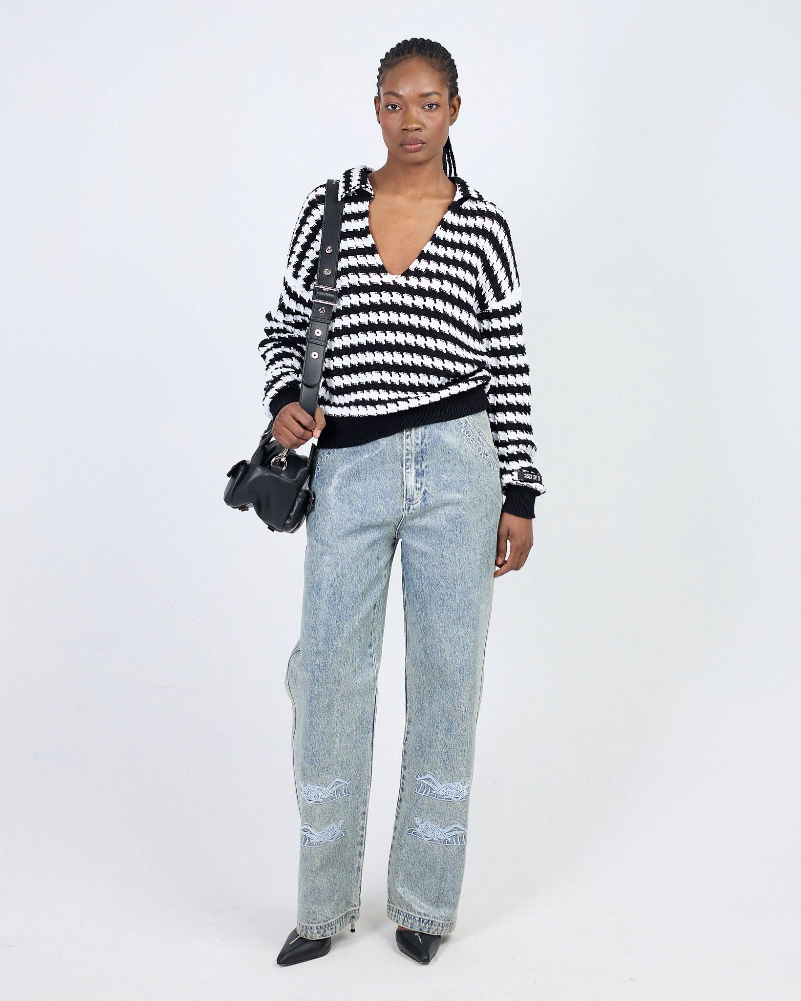 Подходят для стилизации с прямыми или расклёшенными брюками, плотными джинсами, мини-юбками и платьями миди.